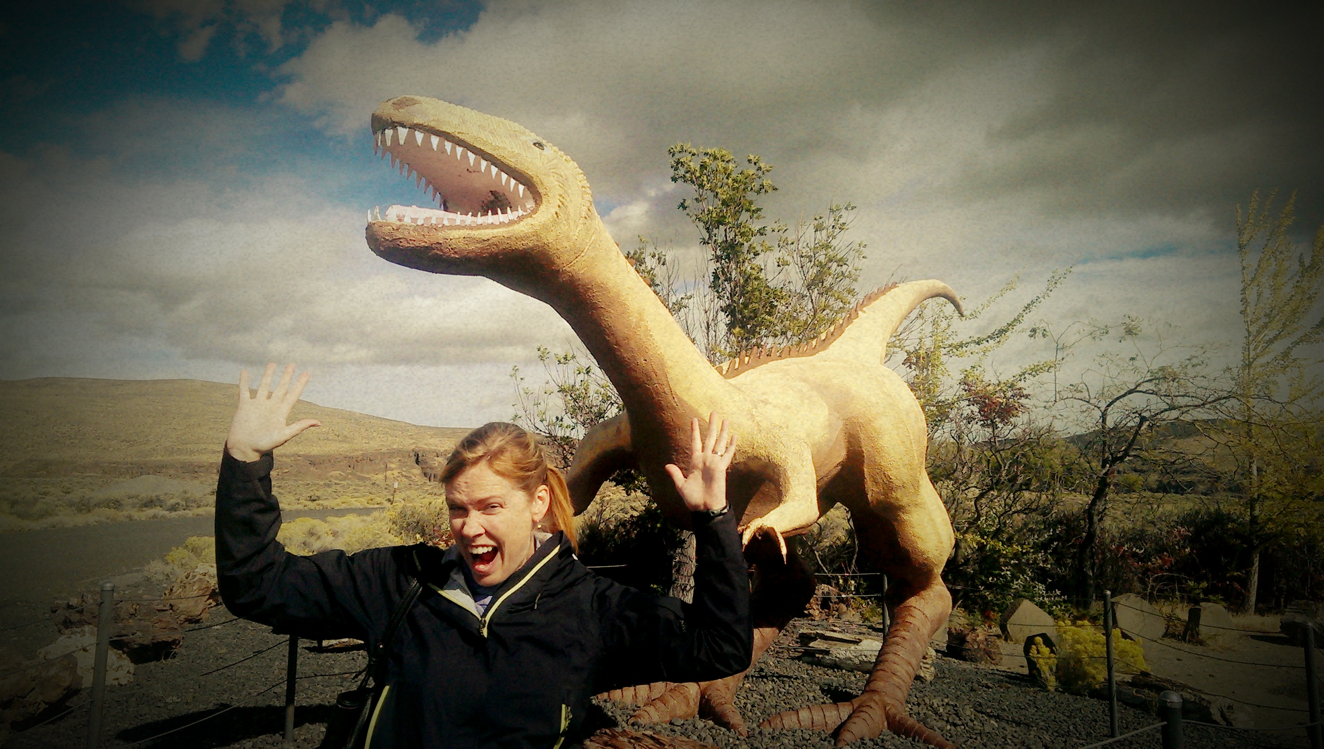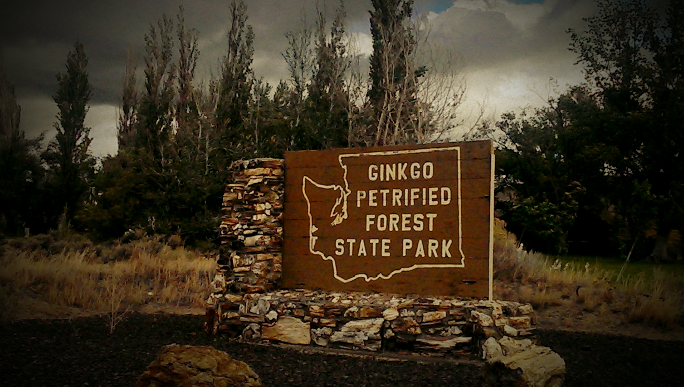 Susan and I made our way through Vantage, stopping to take a photo of a sign that told us they had been “expecting us”. I interpreted this sign as either very welcoming or a tad bit scary. Nonetheless, we drove on towards the nearby Ginkgo Petrified Forest. (Petrified wood was discovered in this area in the 1930s, which led to the creation of the Ginkgo Petrified Forest State Park).