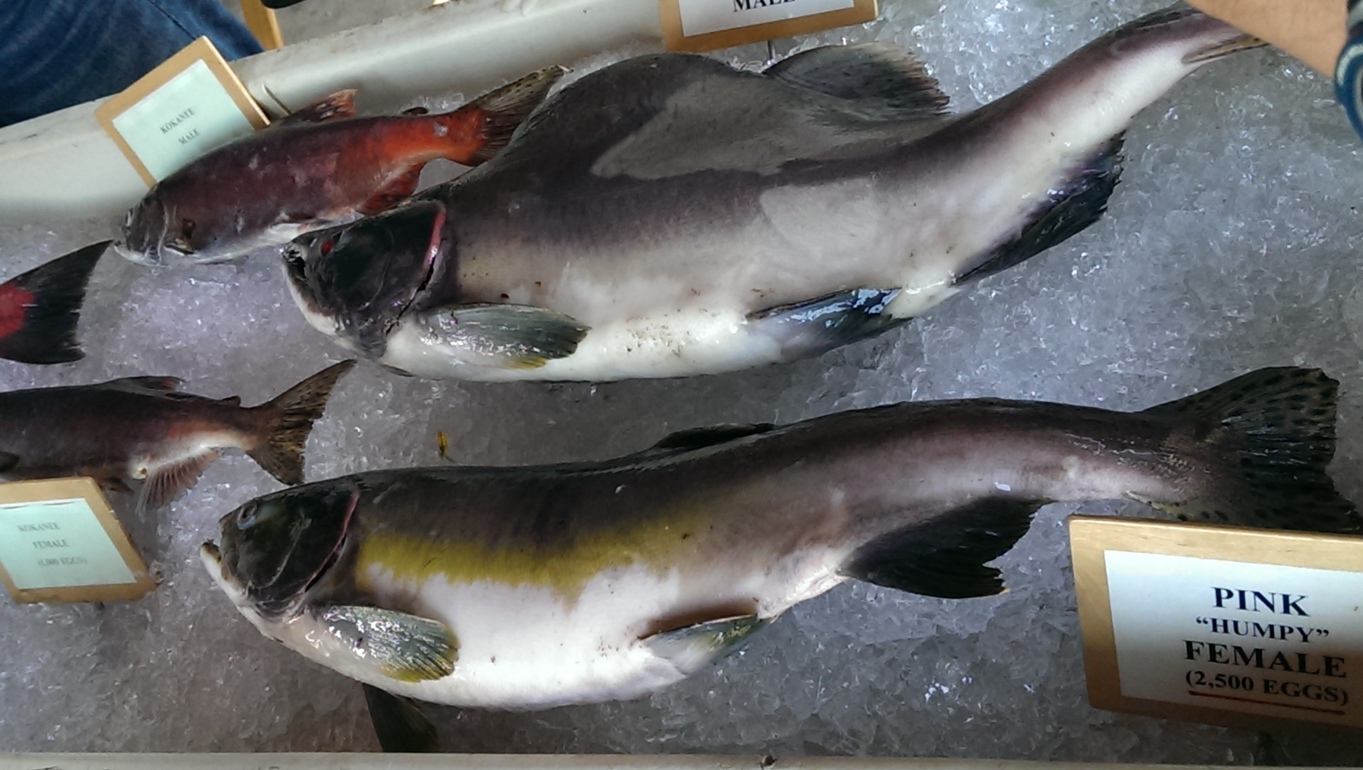 After lunch we enjoyed some bluegrass music performed by the Rusty Cleavers on the Hatchery Stage. There were five music stages throughout the fairgrounds, with music for every style. From there we wandered through the Salmon Hatchery. The Hatchery, which has been in operation since 1936, was the key attraction of Salmon Days, with salmon tanks, fish ladders, and educational exhibits teaching visitors about the different types of salmon. Additionally, the hatchery had an assortment of salmon on display that you could view, learn about their different features, diet and spawning time. This was a really well done exhibit and we both learned something new.