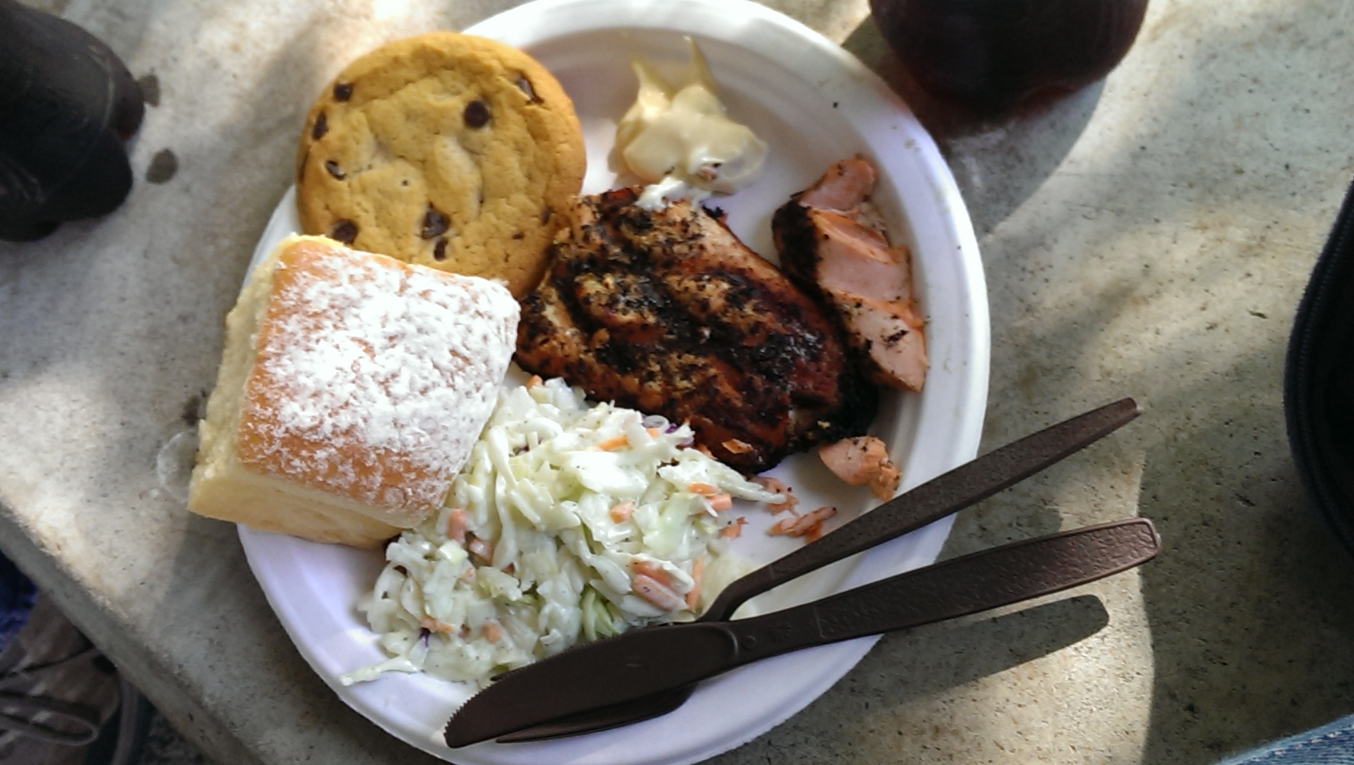 From the crafts vendors, we passed the “Foods of the World” – a street lined with food trucks and booths featuring such diverse vendors as Kenyan Kitchen, Morockn’ Bites, Ziegler’s Bratwurst Haus, and Kolossus Gyros. Despite these international treats, we decided to go to the annual Kiwanis Salmon BBQ for our lunch. The Kiwanis offered full and half-dinners of salmon, corn on the cob, coleslaw and a roll. The fish were barbecued to perfection and all the funds go to support the good works of the Kiwanis.