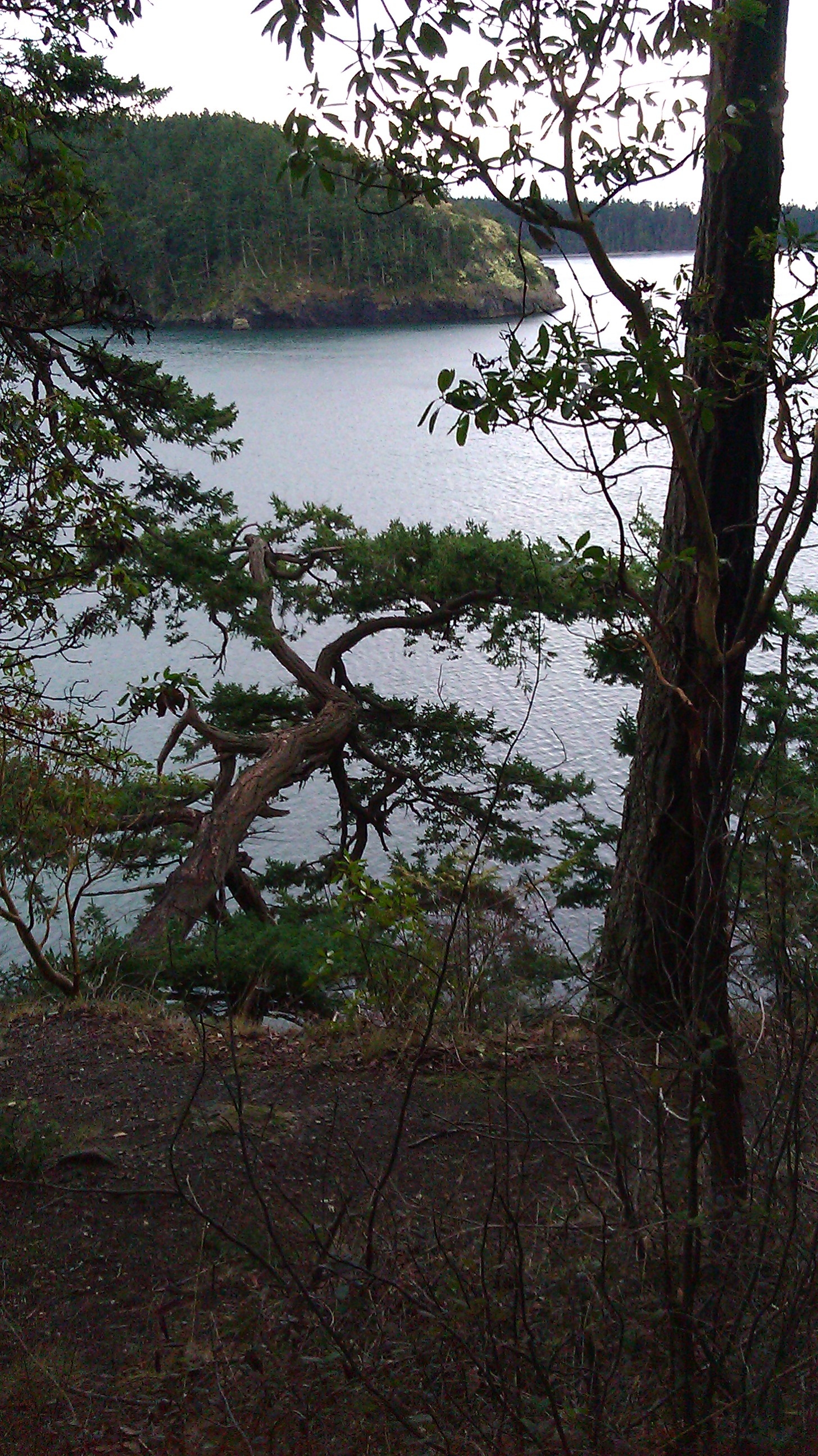 The Rosario Beach trail climbs quickly (100 feet), getting your heart pumping as it skirts the north side of the bay before winding west to a small peninsula called Rosario Head. The views along the trail are incredible as you look down upon the bay. The trees that dot the cliffs are wind-worn and bent into crazy configurations. After a good rain the parts of the path can get wet, muddy and then slippery, so, be careful and watch your footing!, especially when walking downhill.