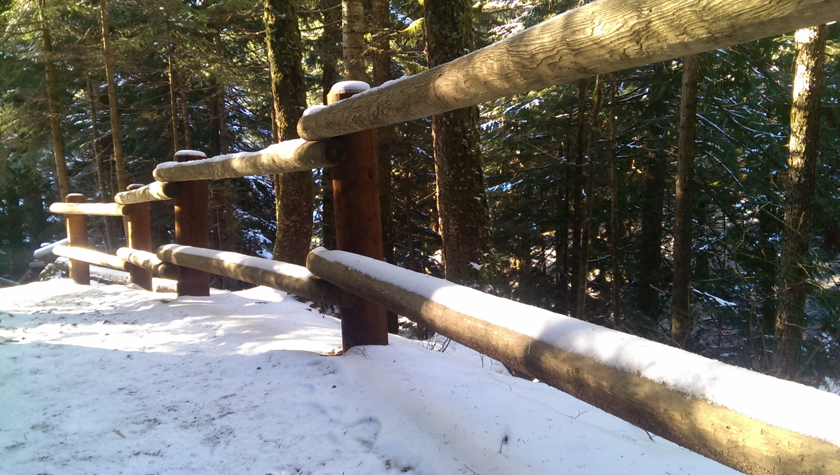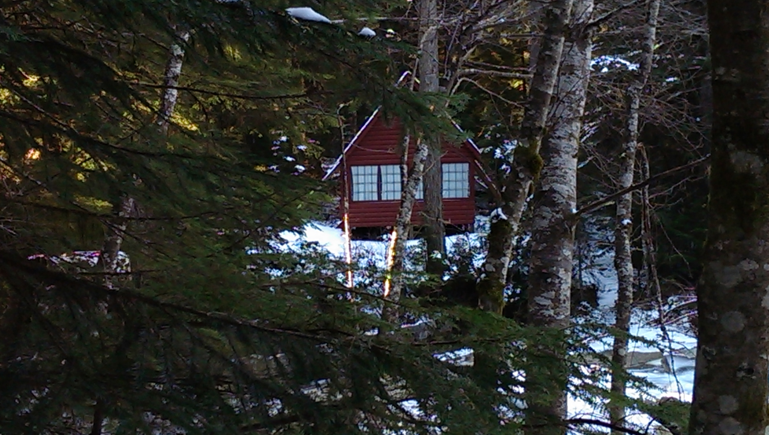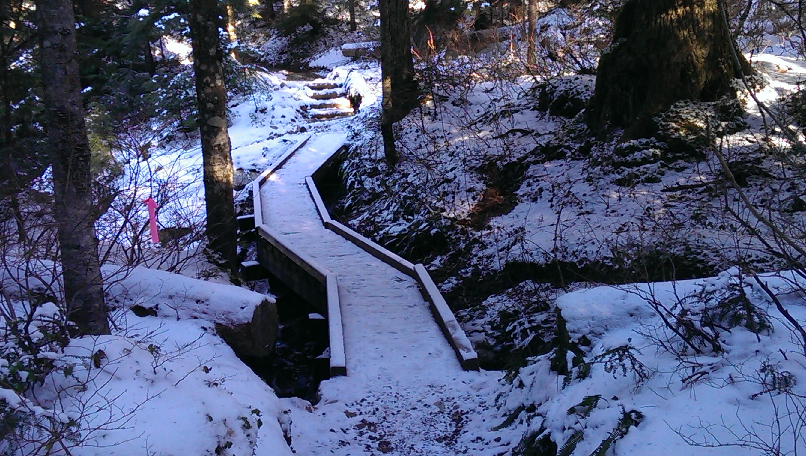 When we got to the trailhead parking lot, it was fun to see snow on the ground (no snow in Seattle). We joined the trail, which borders the Snoqualmie River. There are little houses across the river, which look like they belong in a storybook.