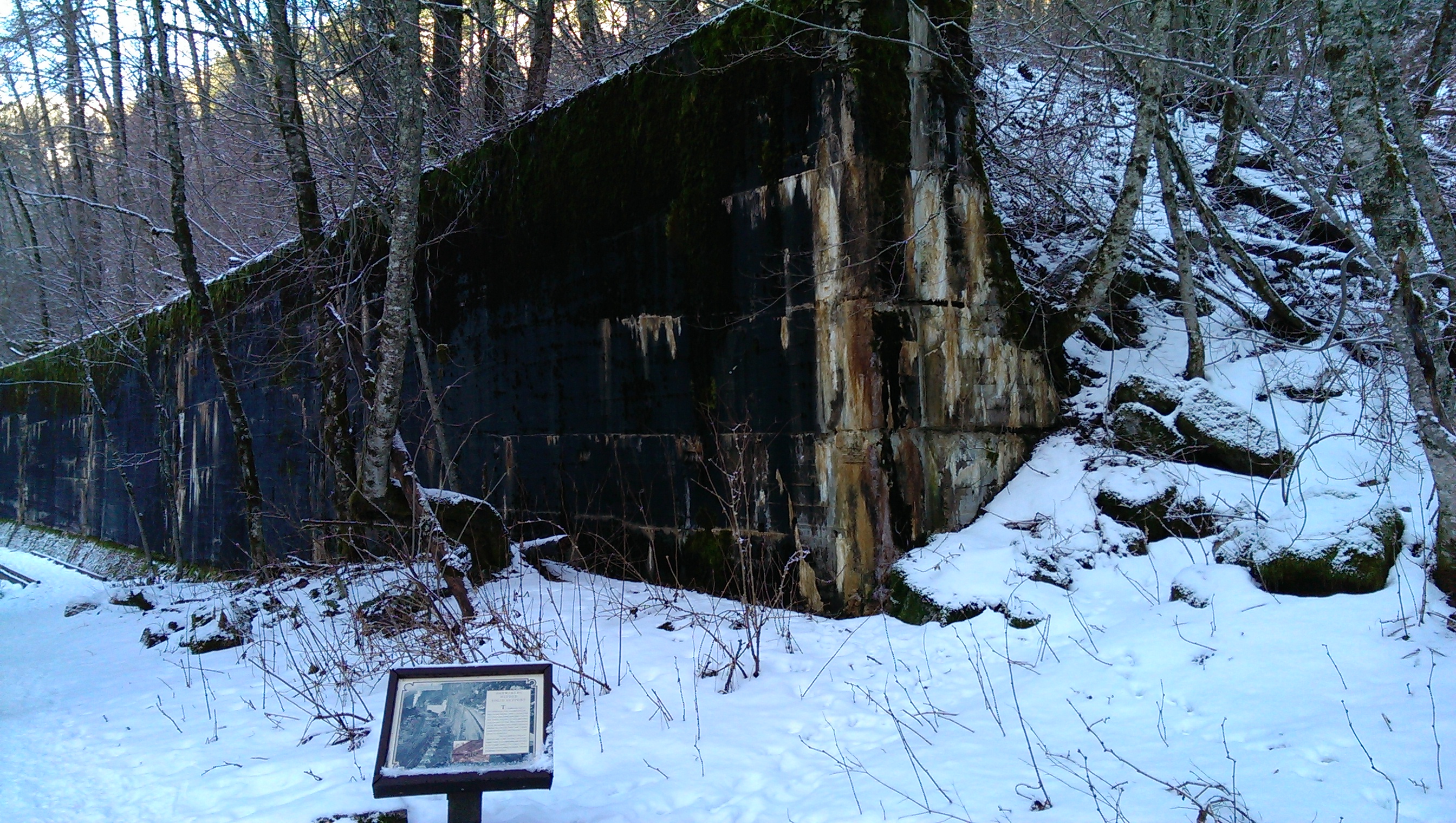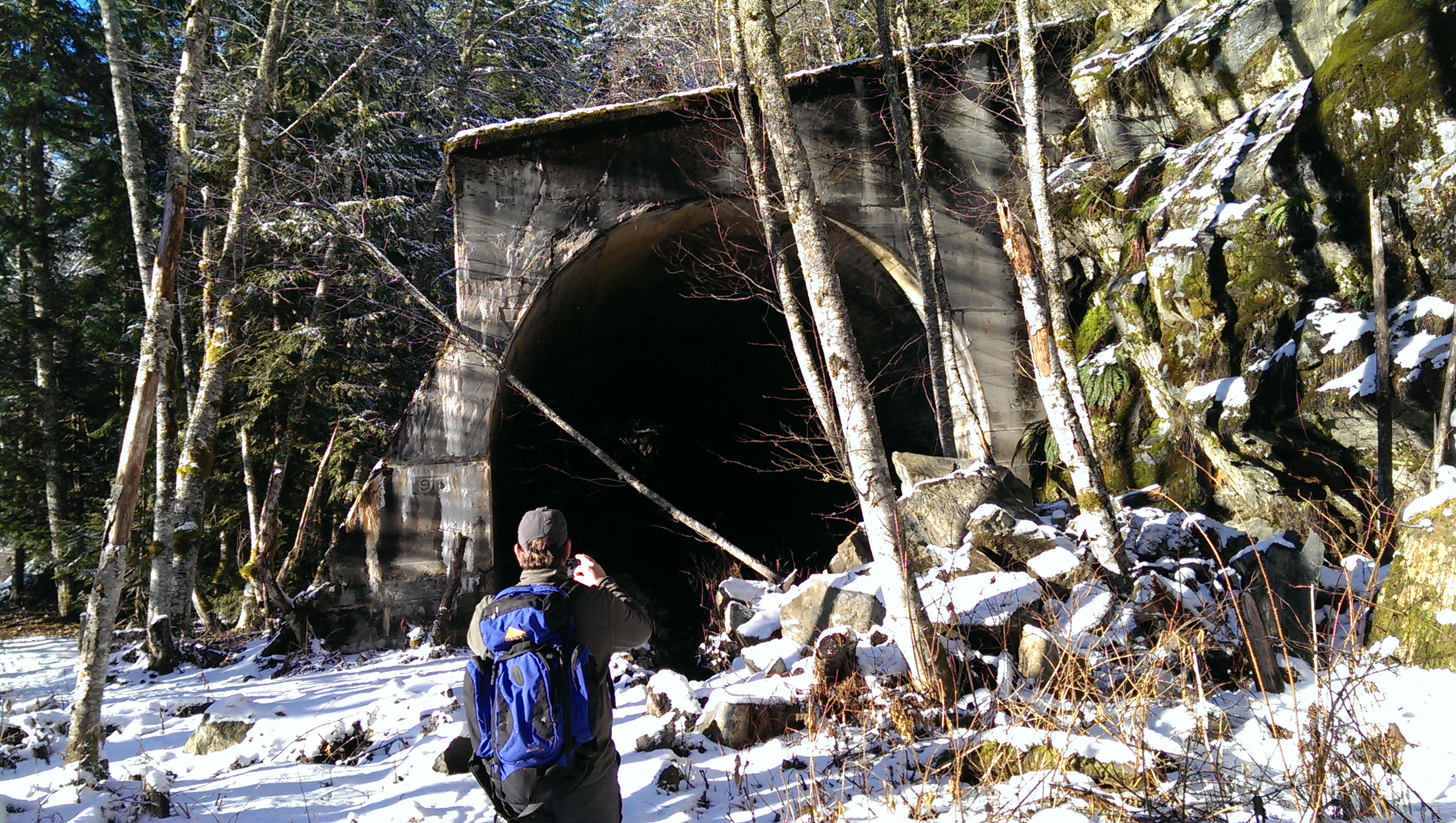 A short way in to the hike, we approached the first “snowshed” – a huge wall meant to protect the trains from oncoming avalanches.