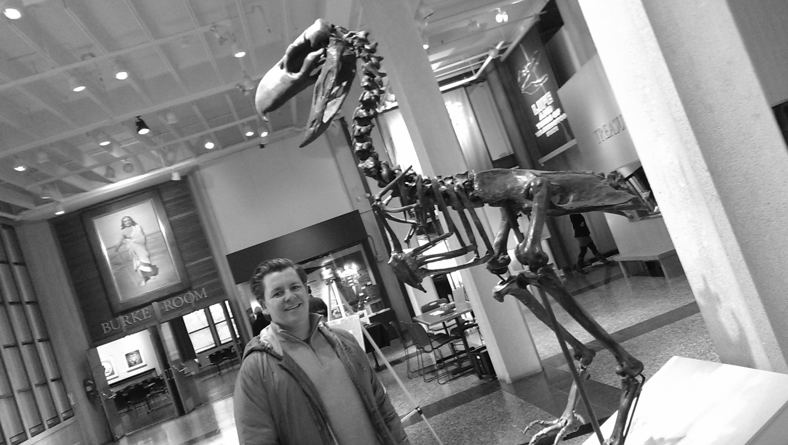 This is the dinosaur section of the museum, which the Burke displays with great murals surrounding the million years old fossils and casts of a creatures such as a mastodon and a saber-tooth cat. The displays, along with maps of the region, really help you visualize these creatures walking the same land as us.