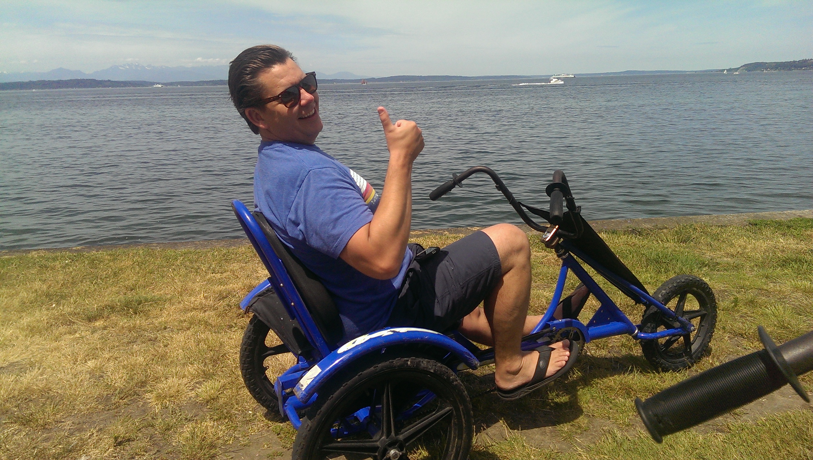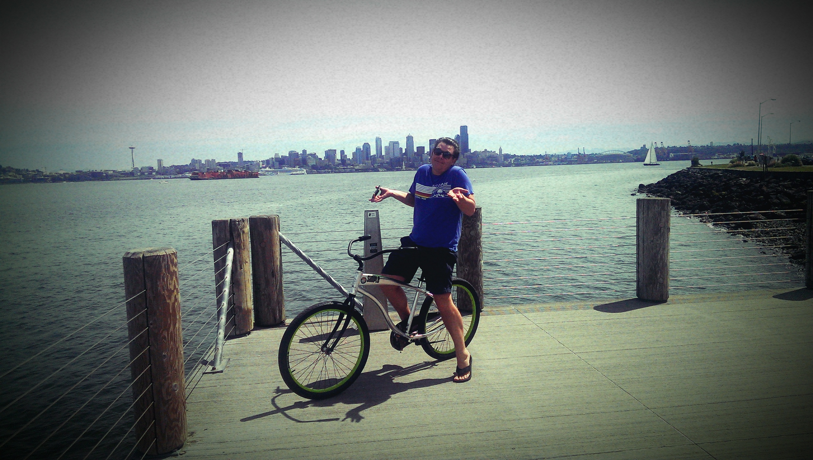 We cycled back to Alki, with Chad giving high-fives to cyclists coming towards us on the path and Chad giving a “thumbs up” to motorcyclists in the street – he felt a kindred spirit since he was on a “chopper” after all.