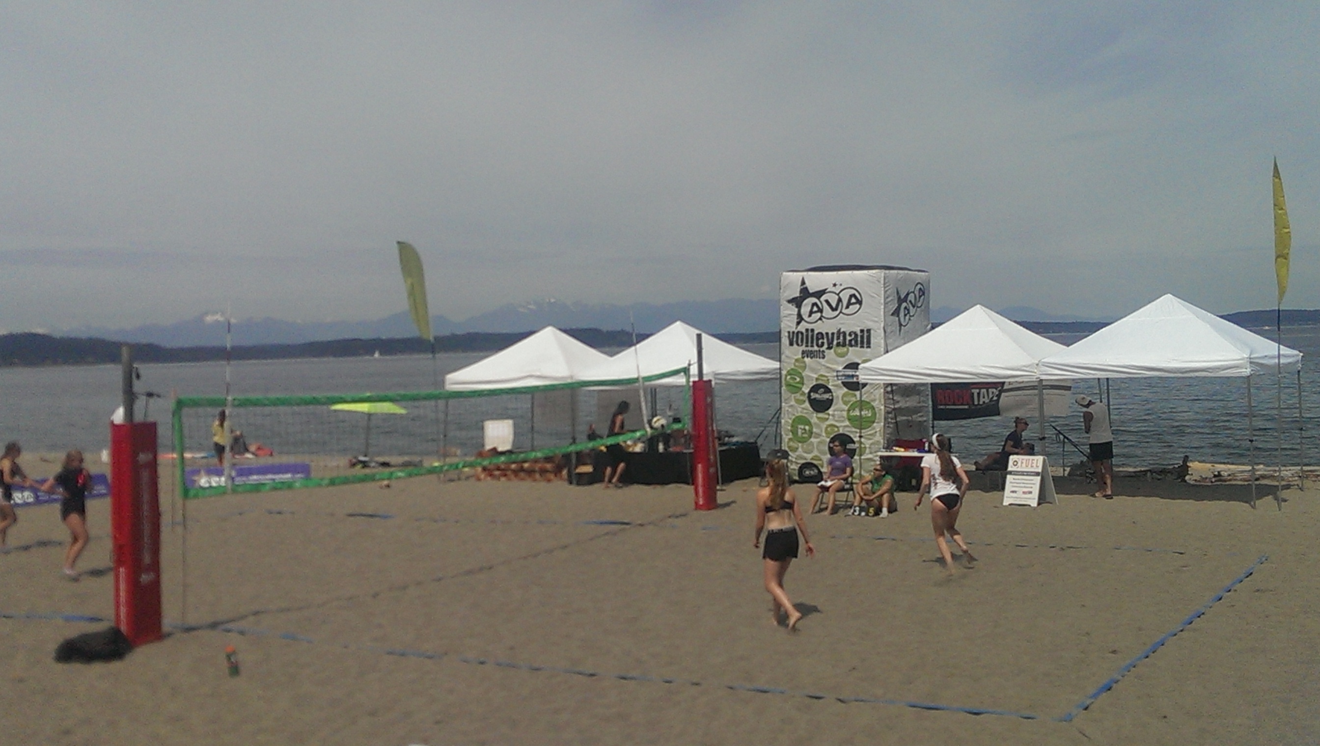 Alki Volleyball Association was having tournaments, and there were a dozen or so nets set up along the beach each having its own game. There were many spectators along the way and the games were very good.