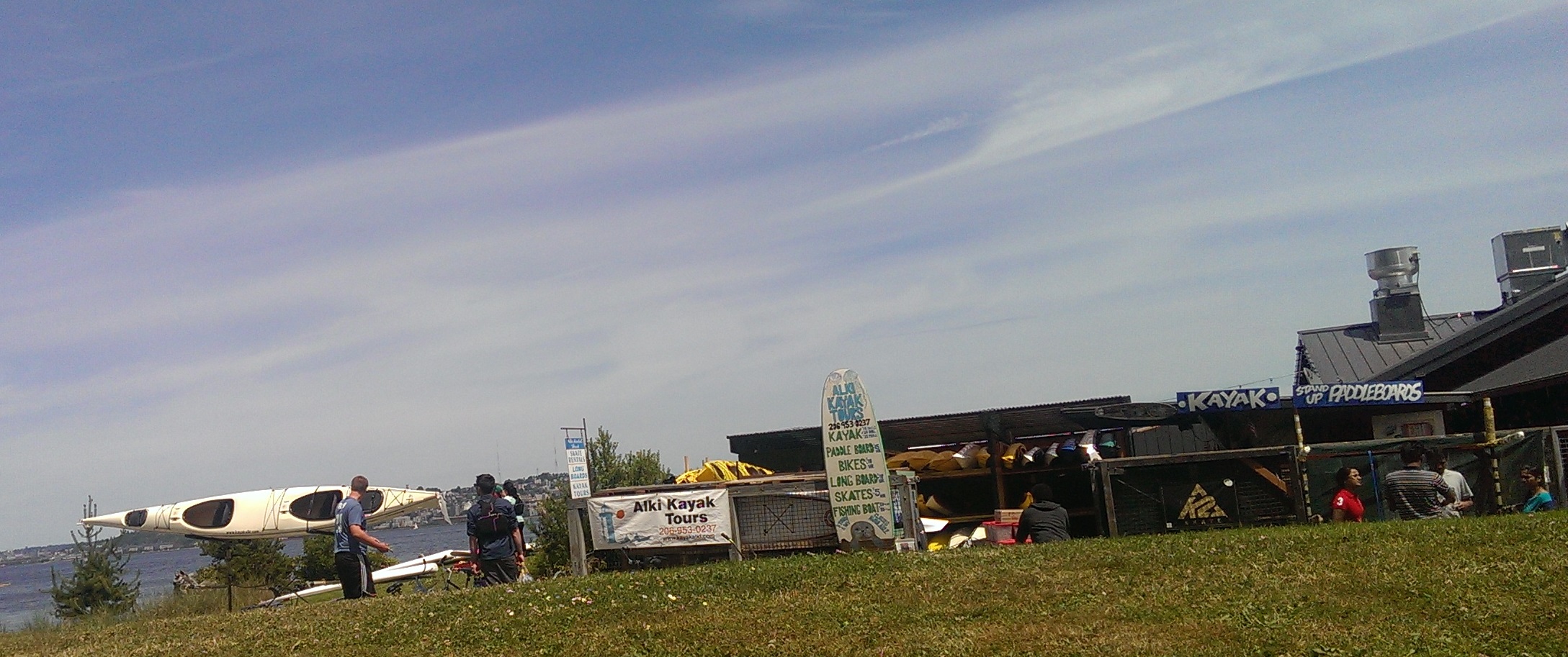 There is so many sights to take in on Alki and viewing them from bicycles was a new perspective for us. First off – there are Amazing views of the downtown Seattle skyline. Additionally, we saw scuba divers preparing to dive and kayakers taking off from Alki Kayak Tours (a great place to rent Kayaks – as we noted in our 48 Hours In and About Sunny Seattle post).