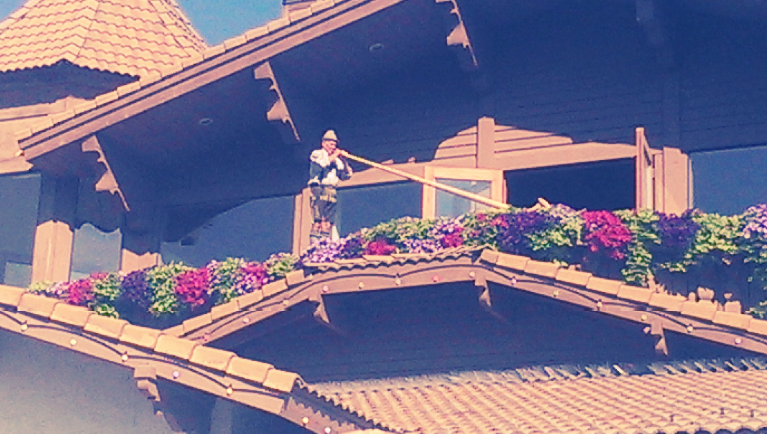 9:15 am – We walked over to Enzian Inn to watch their morning Alphorn serenade.