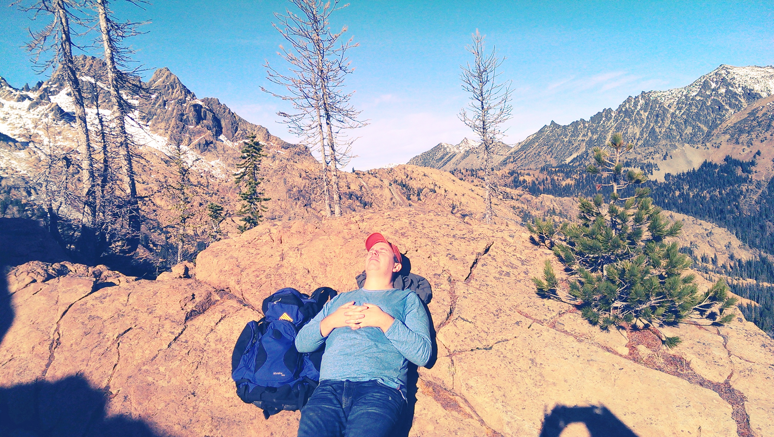 We found a large rock to serve as our picnic site where we enjoyed the midday sun and the amazing views of Mount Stuart and Ingalls Peak.