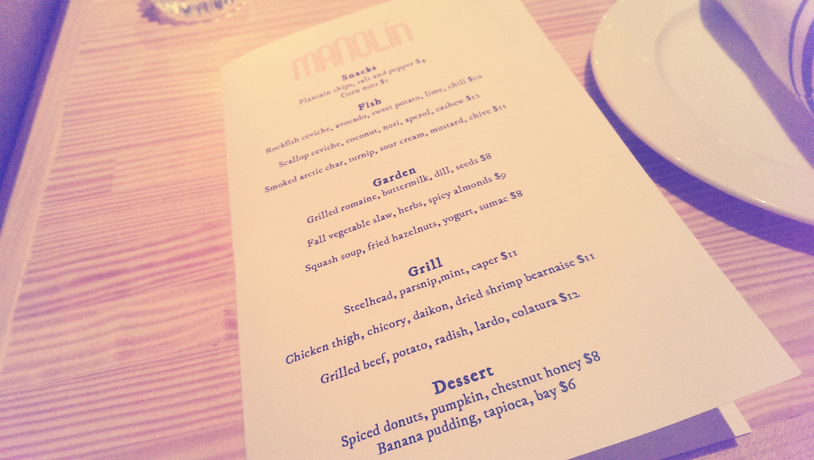 It’s clear that all the staff at Manolin are excited about this new venture. Our waiter (sadly, we forgot to get his name) was friendly and both Johnson and Sundberg made sure to stop by our table and chat.