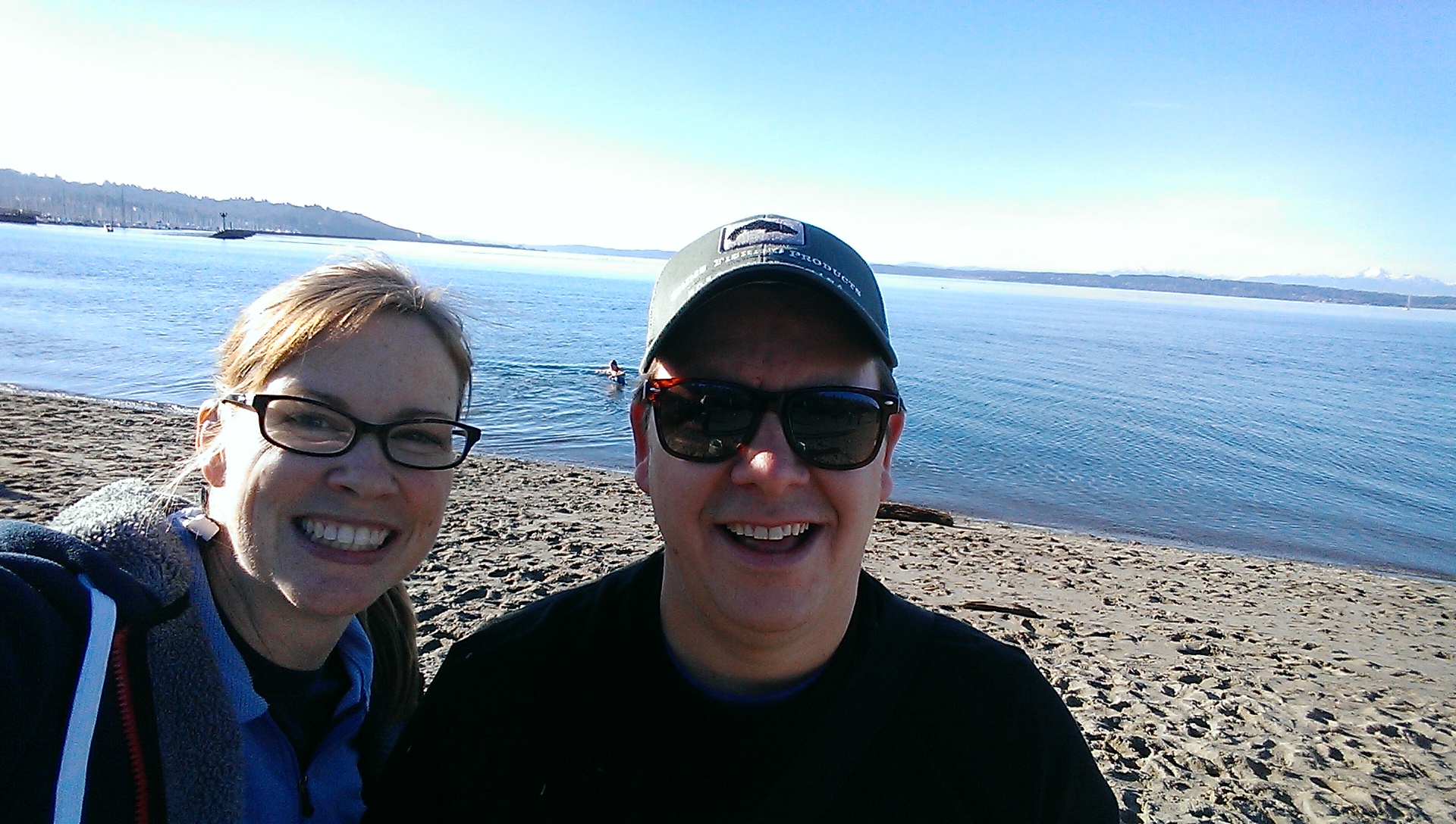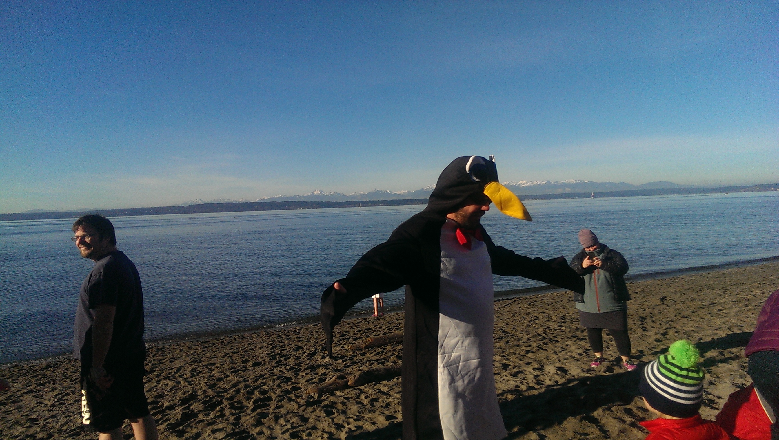 But the diehards (like us) were there. Ok, secretly I was hoping Chad would come to his senses and we would spend New Year’s Day snuggling under warm blankets. But when we got to Golden Gardens (with the temperature at 37 degrees), I got in the spirit of the event.
