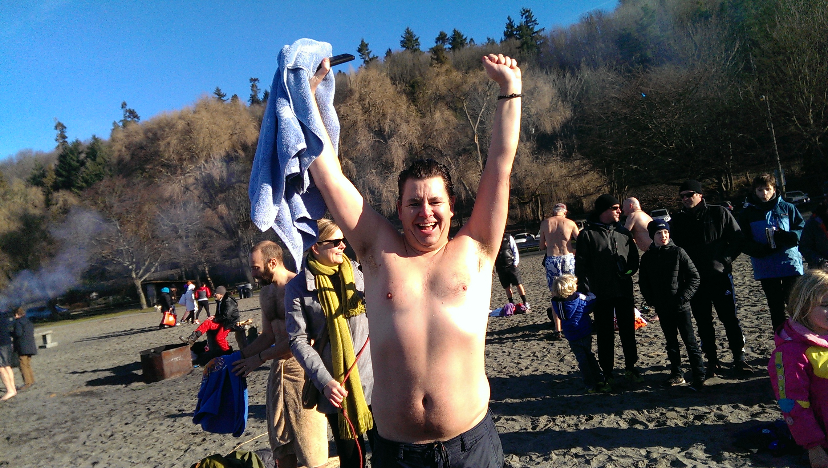 5-4-3-2-1! We ran quickly into the icy cold waters of the Puget Sound and ran just a quickly up to dry land to grab our warm towels.
