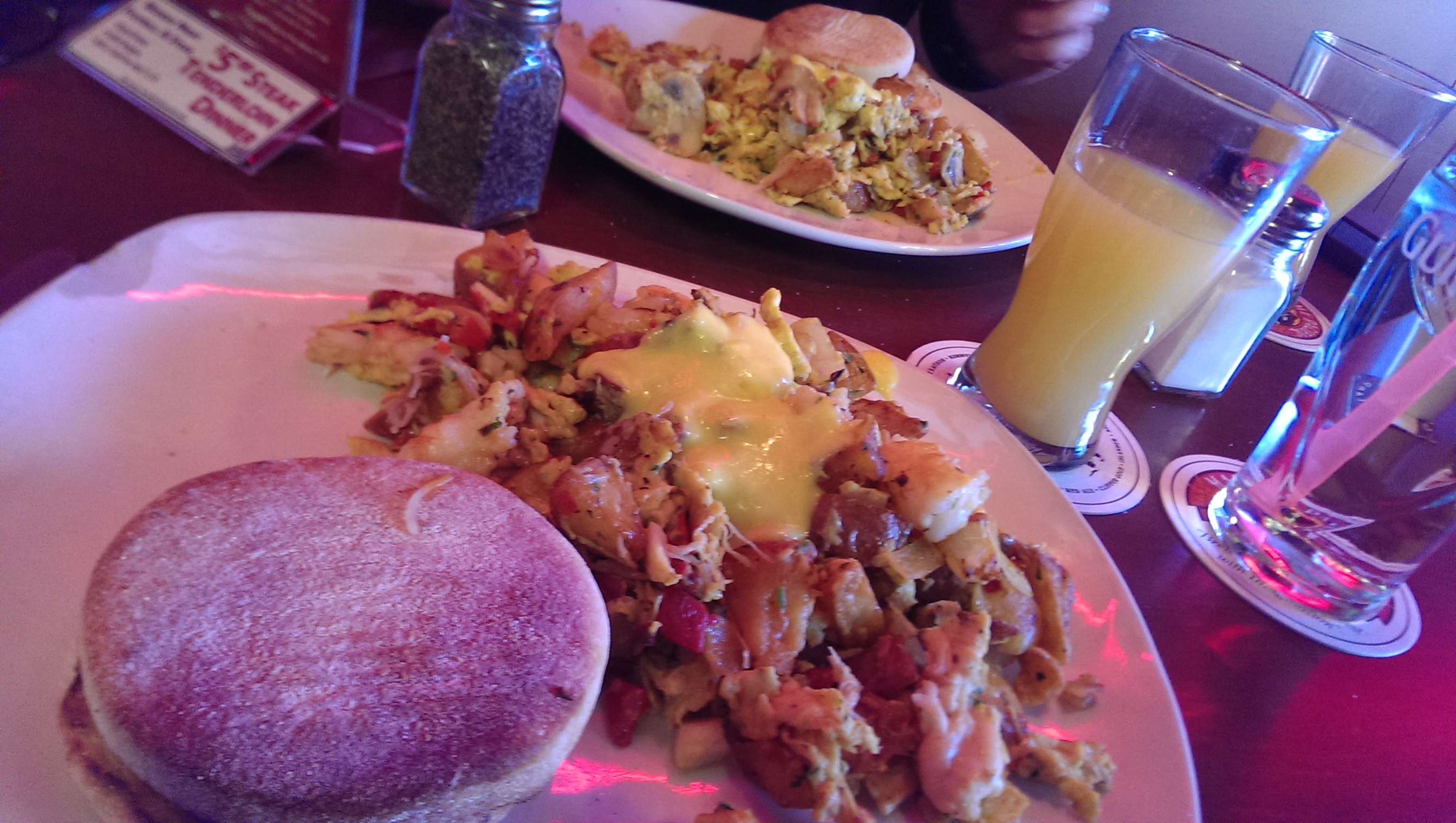 After the plunge, we drove over to Bad Alberts in Ballard for some brunch. Bad Alberts is one of the few remaining restaurants that has survived the gentrification of Ballard, so you know it has to be good. Chad and his brother have been to Bad Alberts many times over the years, but I had never been. I was glad to bucket list this restaurant and was pleasantly surprised by my tasty dungeness crab and shrimp scramble.
