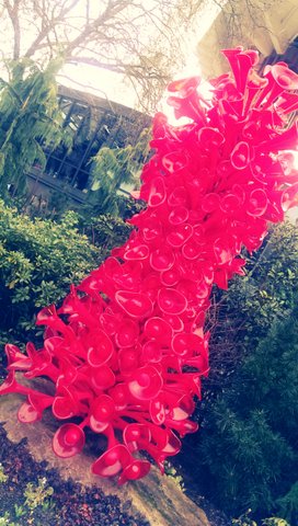 After an hour of Sun Salutations, Warrior Poses, crunches, breathing and inhaling the beauty of both Chihuly and of course, our flawless yoga, we ended.