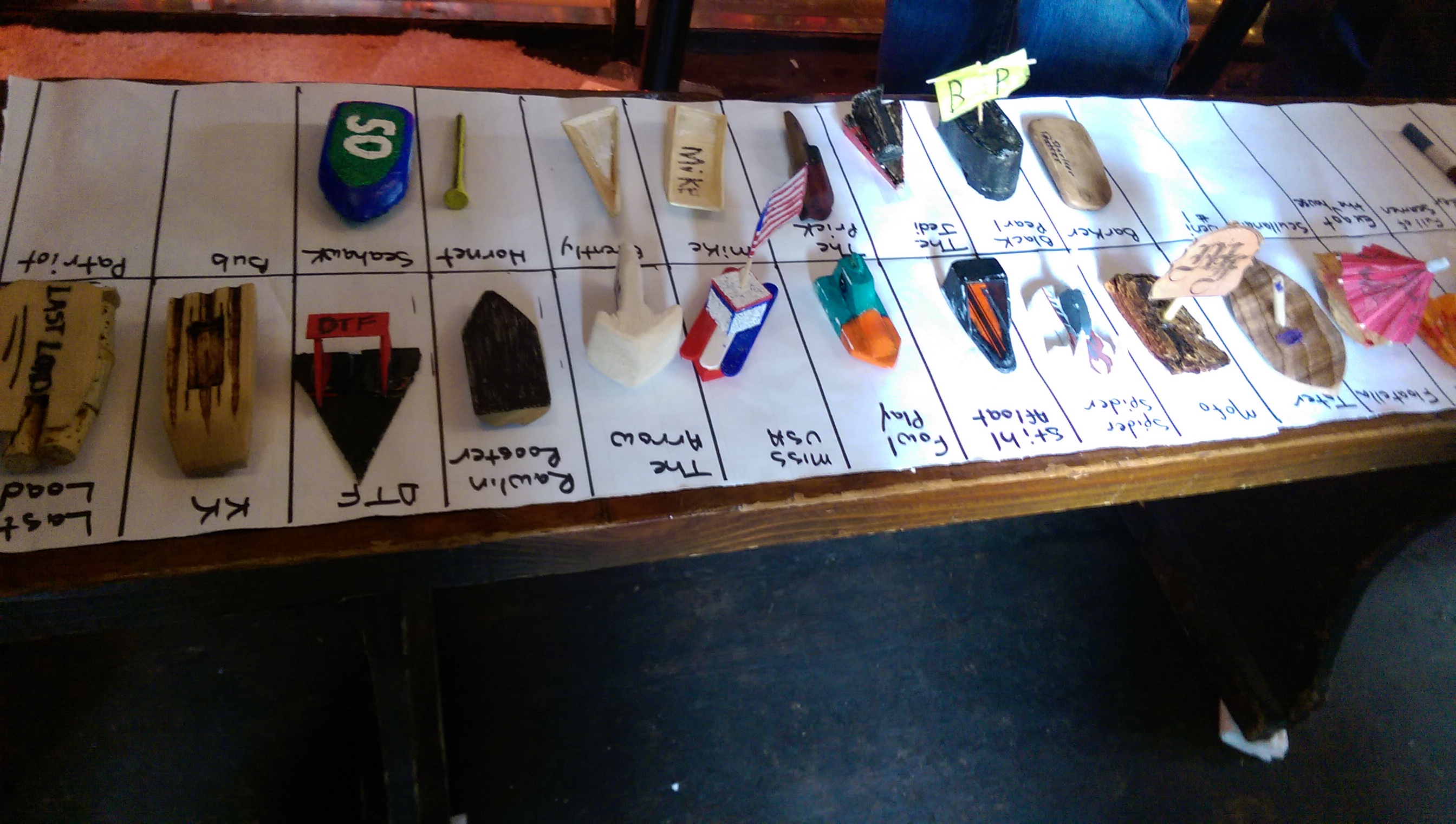 Towards the back of the restaurant a large table allowed racers to showcase and discuss their designs, do a bit of boasting and prepare their boats for their next race.