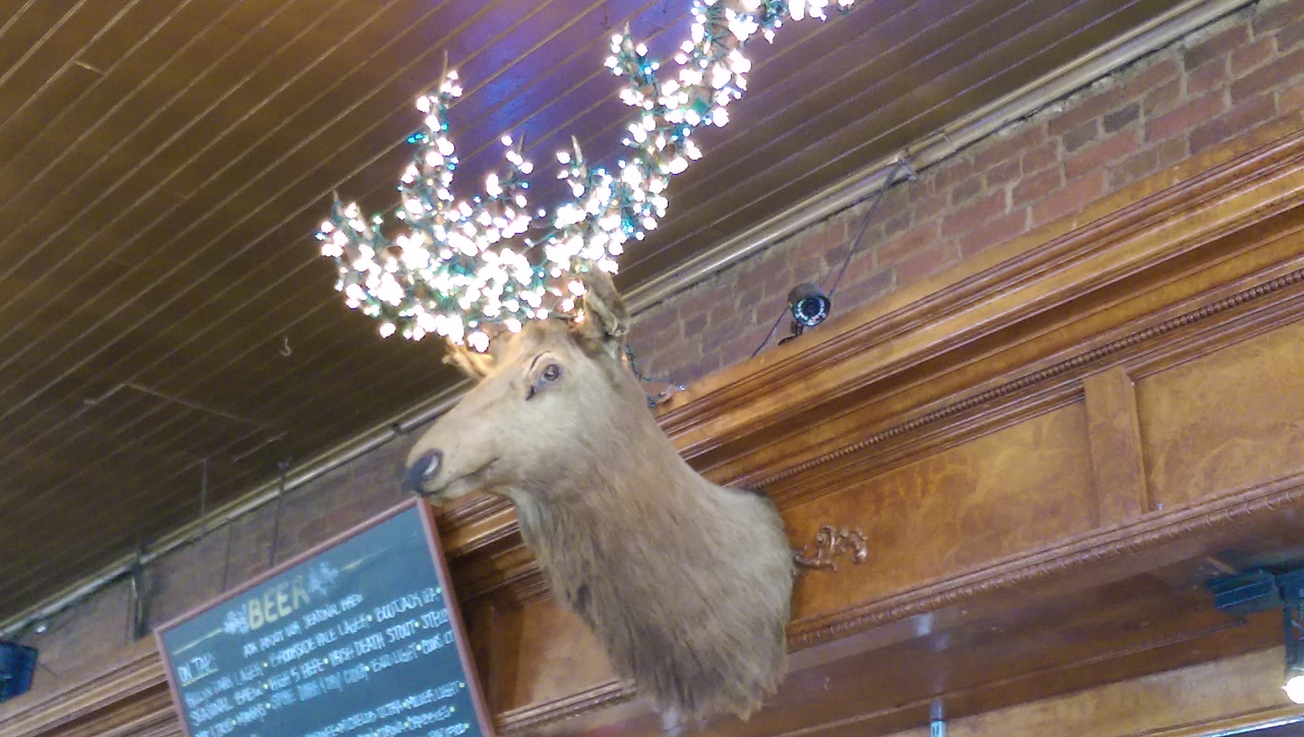 This bar, brought over from England, just so happens to be equipped with a water-running spittoon that runs the length of the bar. Thankfully, unused by today’s patrons.