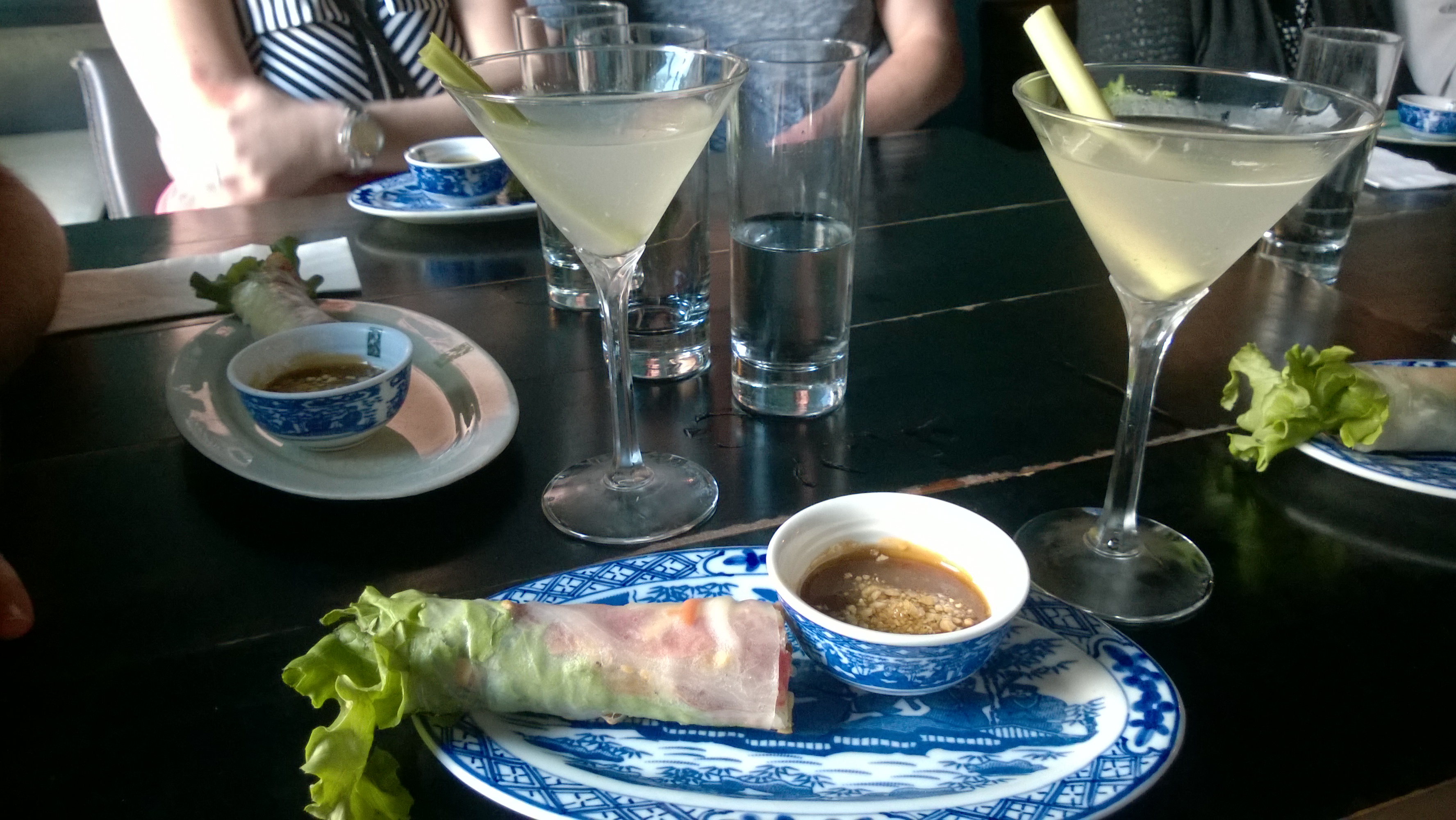 I say we stepped back in time at Long Provincial Vietnamese Restaurant, because this restaurant has a very retro feel to it. But the food and drinks were timeless. We enjoyed a fresh spring roll and a vodka/lemongrass martini.