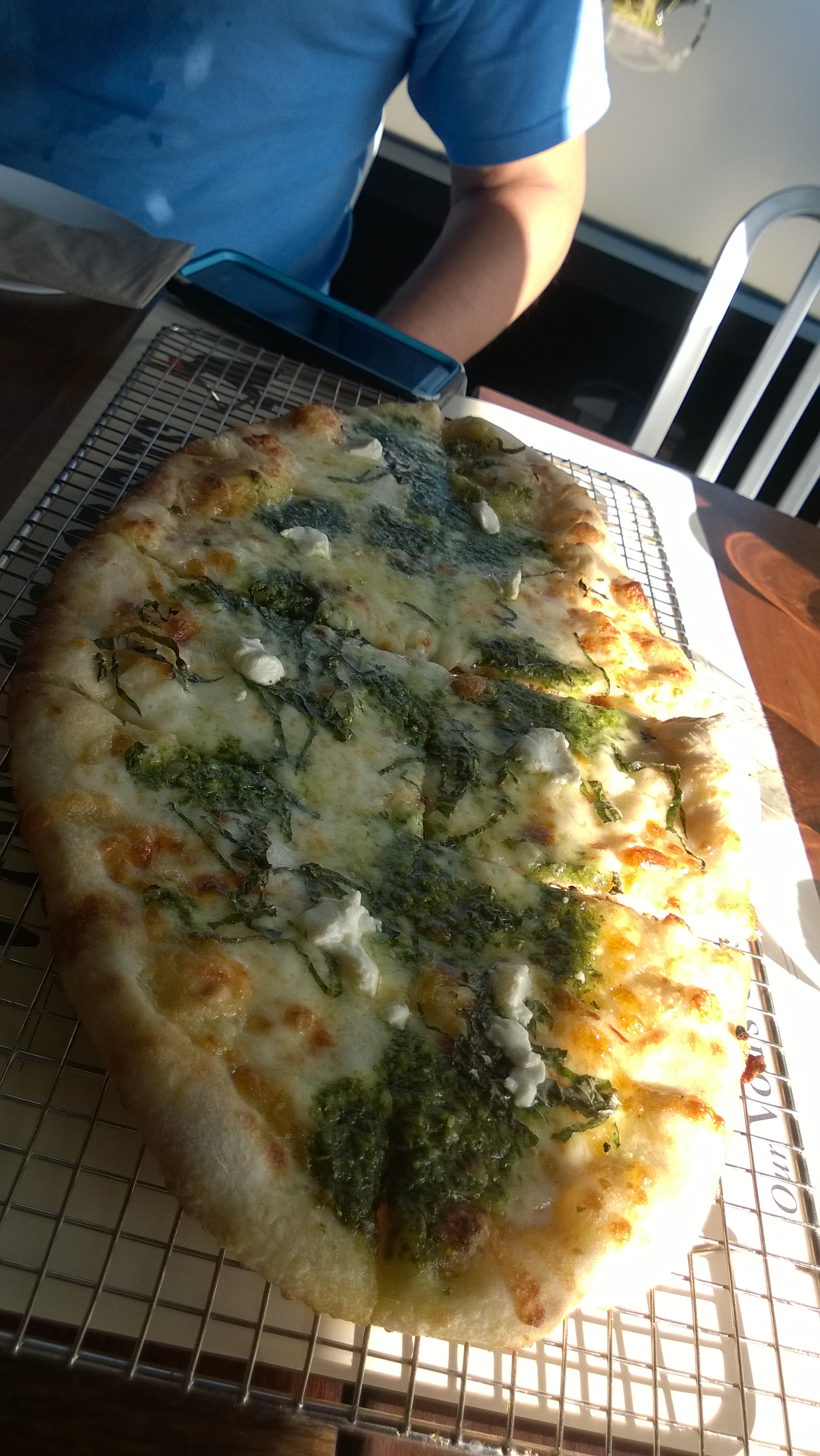 but it also serves up fresh sourdough pizzas. We enjoyed a pesto pizza