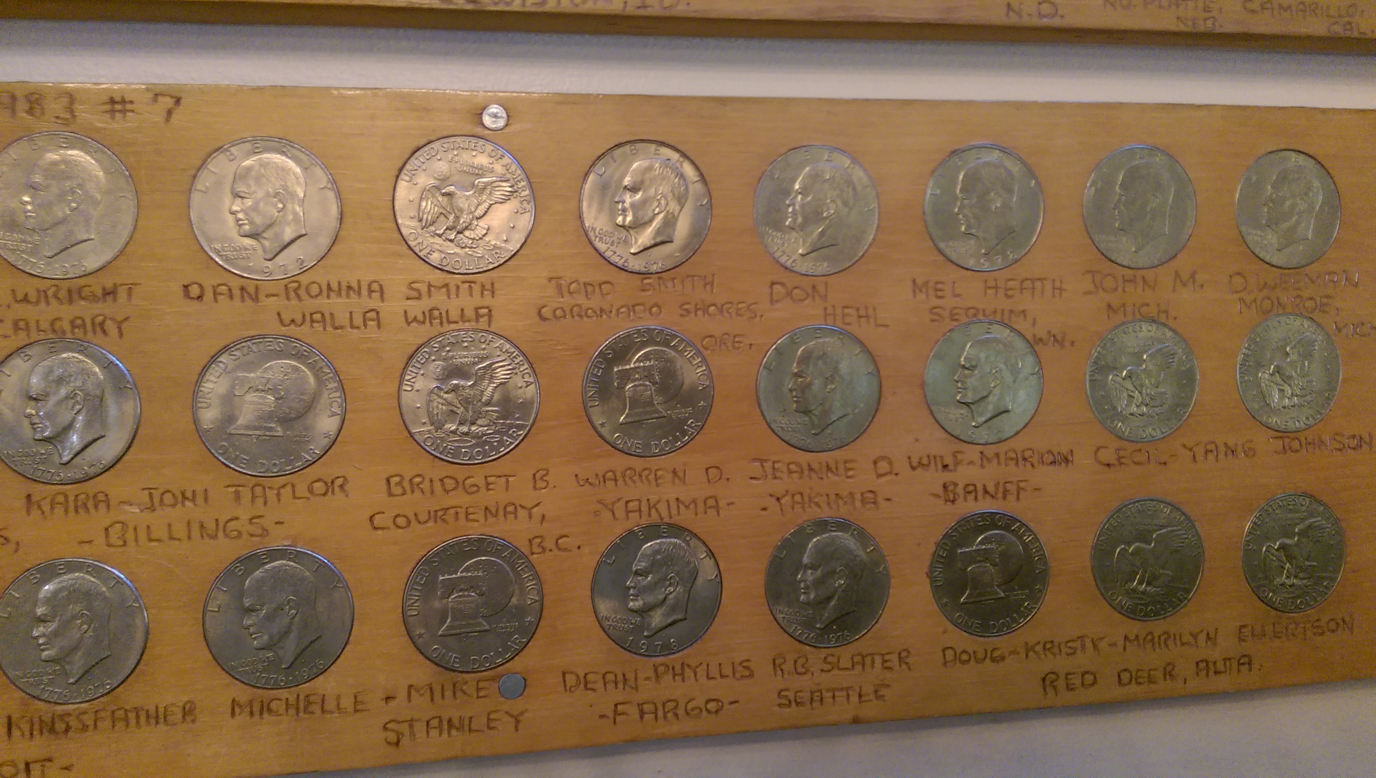 People from all over the wall donate silver dollars (you can buy one for – you guessed it – one dollar at the bar) and their silver dollars are showcased on the walls and in the bartop with their names (and the city they are from) inscribed in wood.