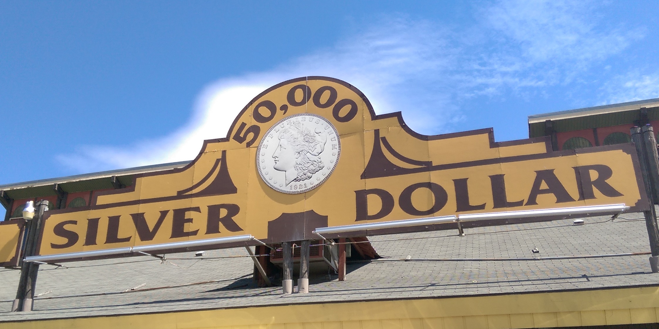 For miles, and I do mean miles and miles and miles, we kept seeing billboards advertising our next stop: 50,000 Silver Dollar Bar-Gift Shop – Restaurant – RV Park – Casino (of course) – and Motel. This omni-plaza was created by Gerry and Marie Lincoln in 1952, originating as a place to showcase their unique collection of silver dollar coins.