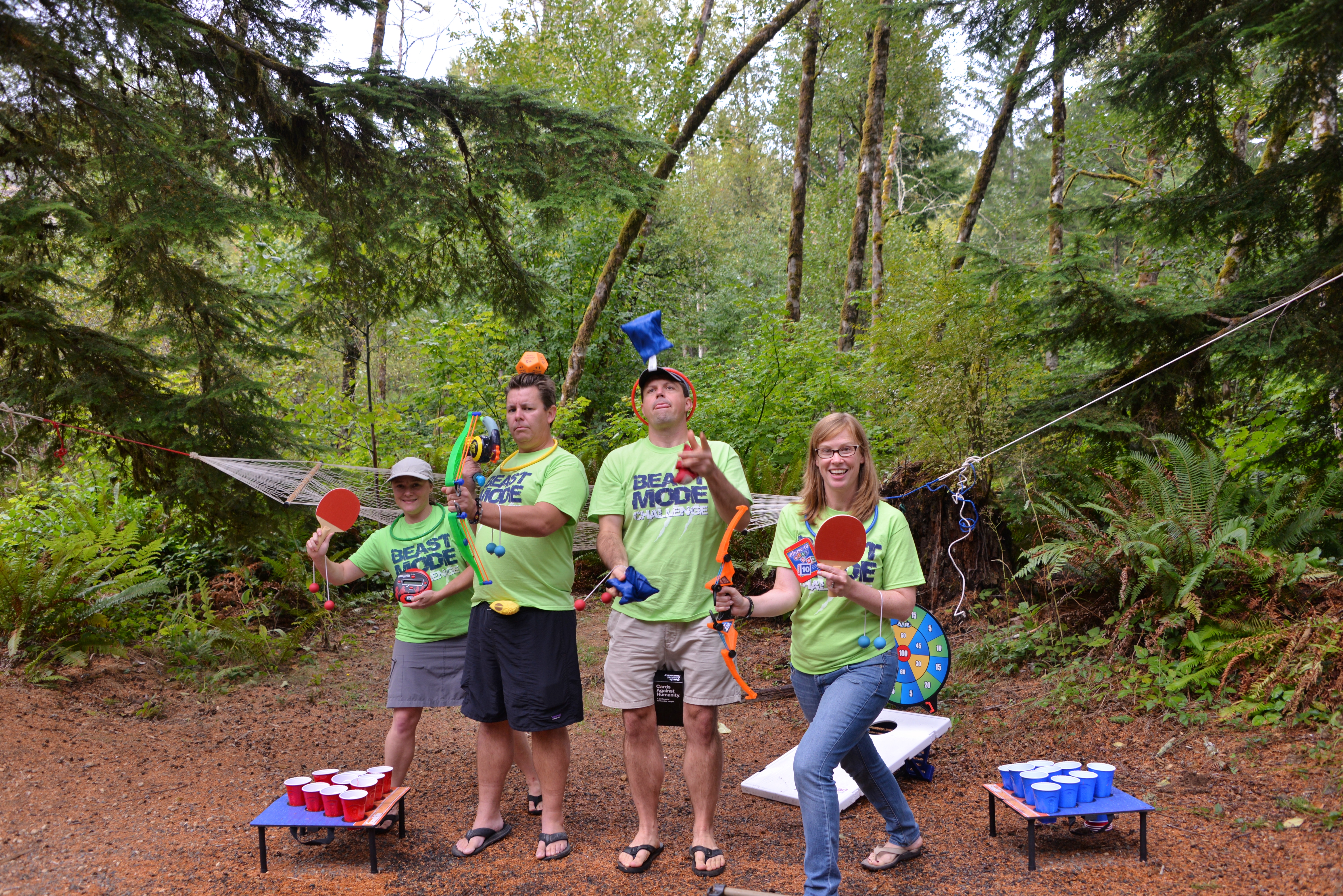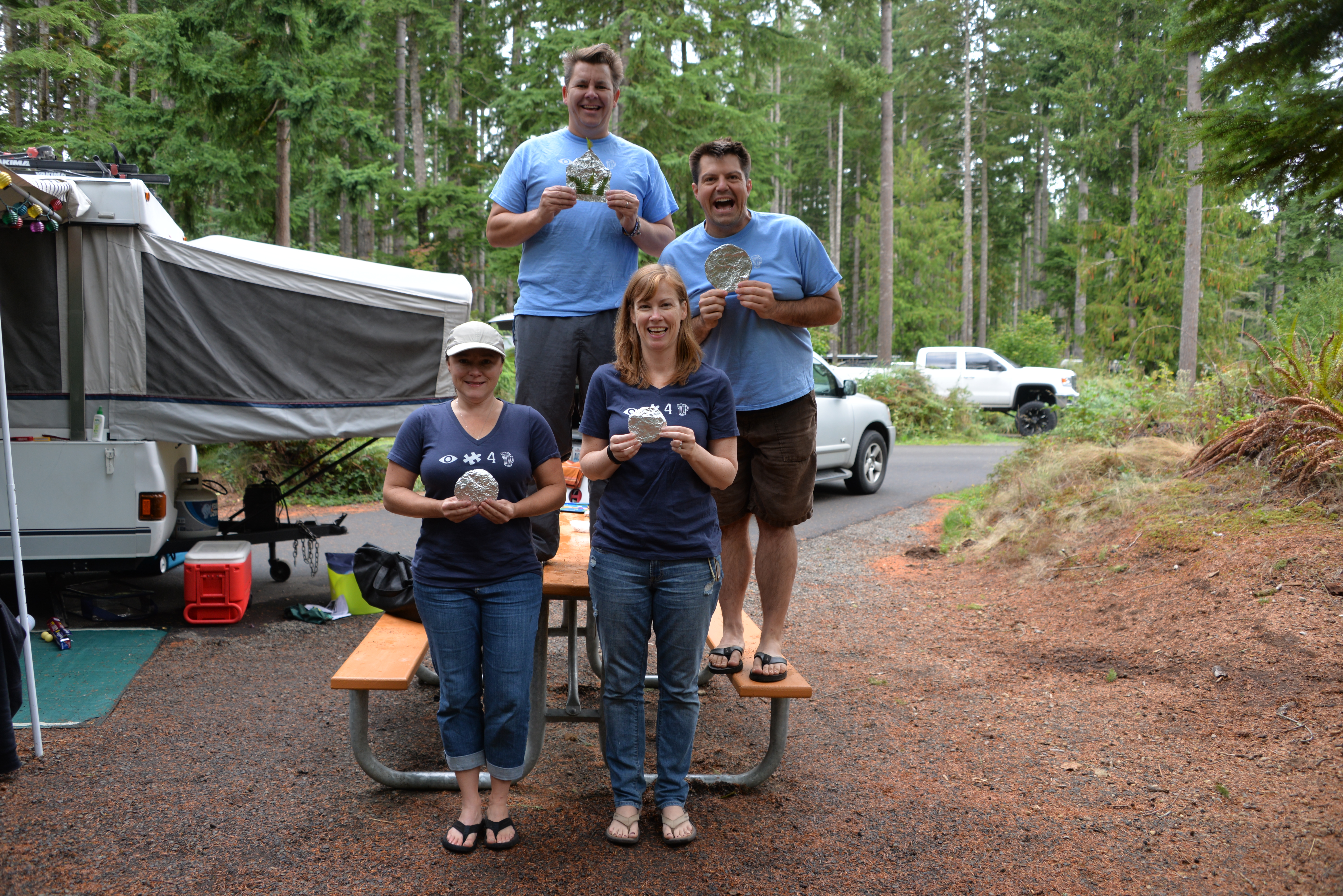 In planning for this trip, the four of us decided it would be fun to have Camping Olympics in which we would compete in various water and land sports and games. As the four of us had previously participated in a Seattle Scavenger Hunt, the Puget Soundkeeper Alliance Seattle Summer Sweep Clean-up of Lake Union, and the Beast Mode Challenge, we each had matching t-shirts from these events, which we thought would work well as our Olympic uniforms.