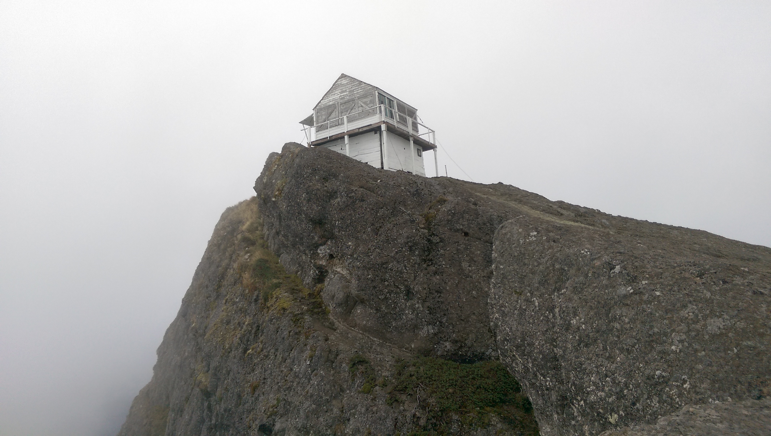 At the top of Sawtooth Ridge is a spectacularly spooky lookout cabin.