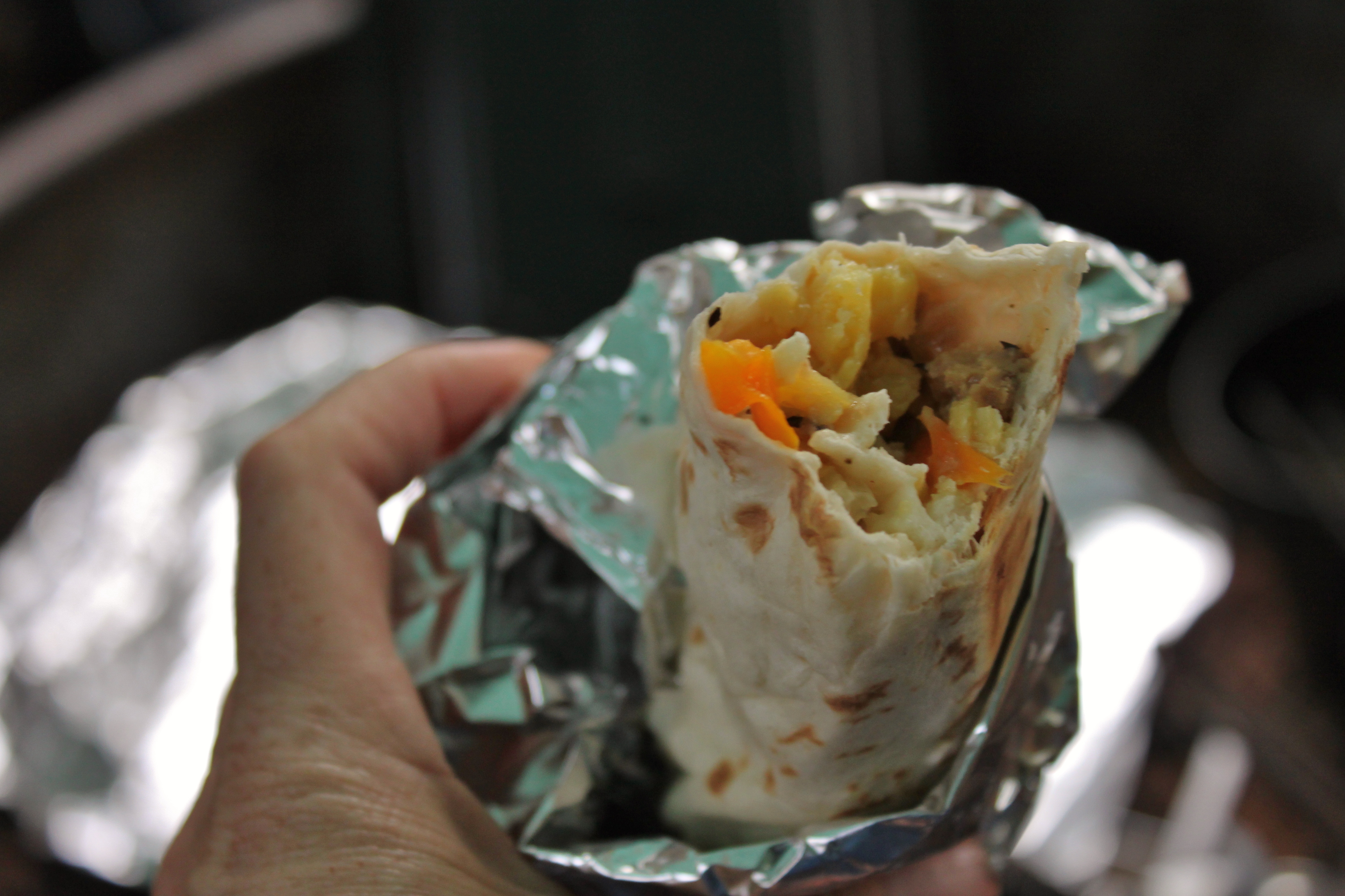Saturday: Crystal made some delicious breakfast burritos (also wrapped in foil!).