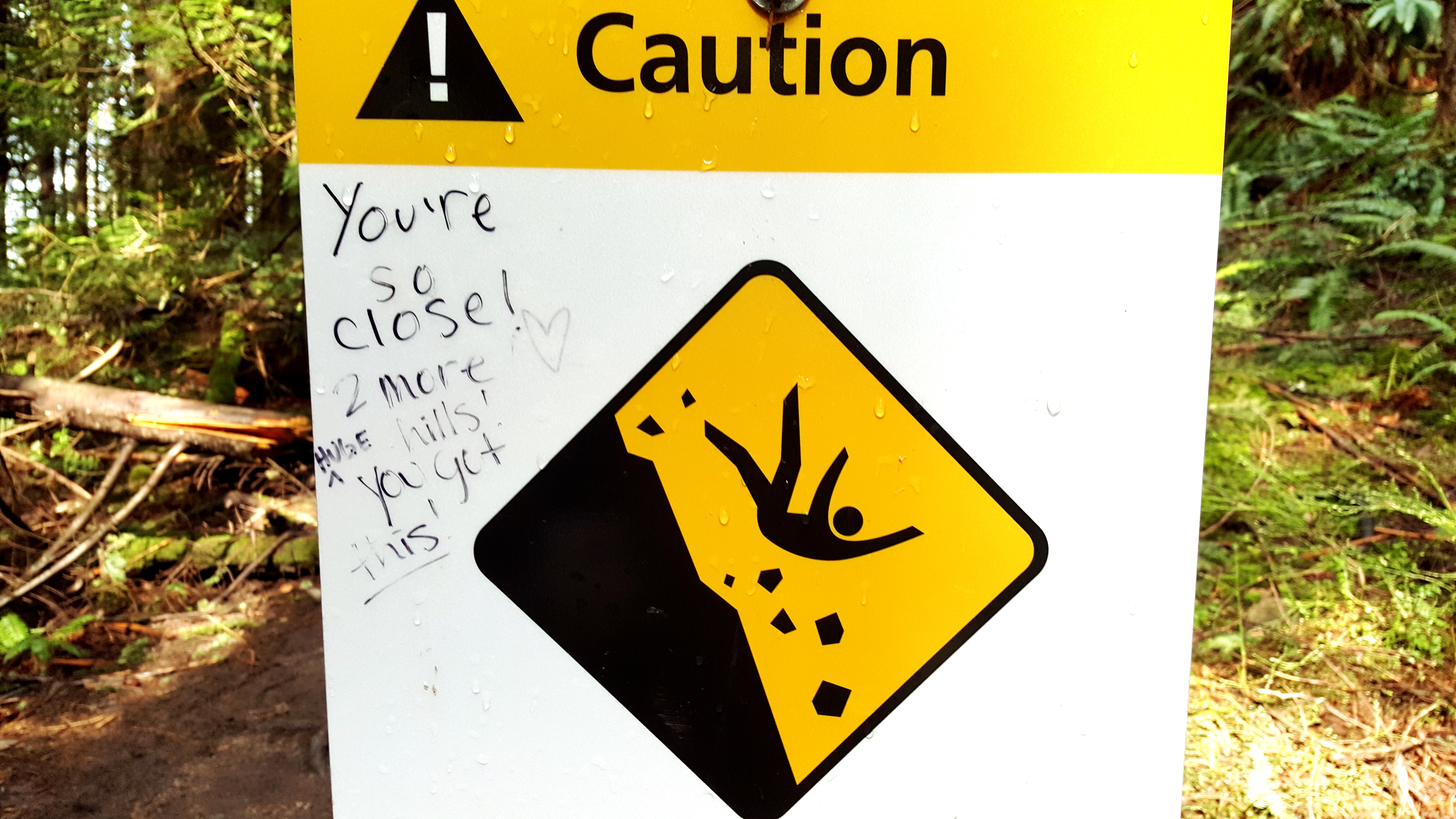 After the Ice Age, you will hit another junction which allows you to go right to Lily and Lizard Lakes, but keep left to continue to Oyster Dome. Crossing a creek, the trail becomes a bit faint, but follow the footsteps of others before you. From here there is one last steep climb – well worth it as this sign with the inspirational message indicates: